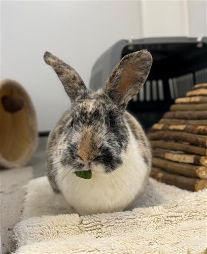 Background: Meet Lenny, a single male rabbit who is looking for a new home with a suitable companion. Lenny came to Raystede due to his previous owner's poor health and unfortunately was not kept in the best of conditions. We have limited information about his history however since coming to us he has really started to come out of his shell. He is a sweet calm boy and is very clean. He is still cautious around new people, but he will now accept treats and occasional head strokes once he trusts you. He needs a kind and patient home who will help him to build confidence around people. Home wanted: Lenny will require an indoor home, either free roam or a designated pen measuring at least 60ft². He can be quite shy so he would benefit from a quieter home. He's litter trained and not destructive. Children: Could live with older respectful teens/adult only home. Recommend limited handling. Other animals: Requires a companion - would be best suited to a spayed female. Must be kept separate from other pets in the home. Additional needs: Since being with us he has been on a controlled diet as he was overweight when he arrived. This will need to be continued in his new home. If you are interested in adopting Lenny as a companion for your rabbit, please complete an online application form.
